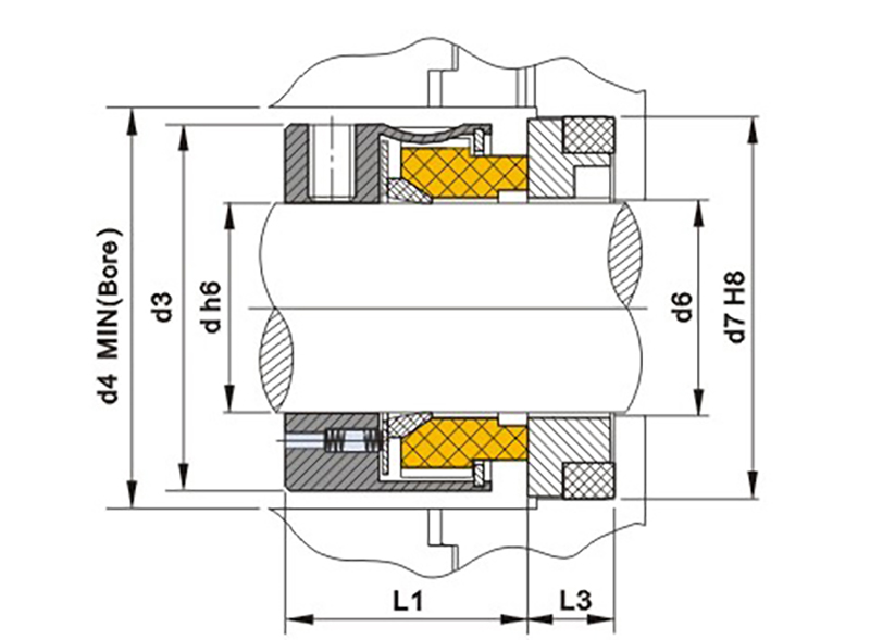 Sello secundario (PTFE/carbono flexible/PTFE + VITON)