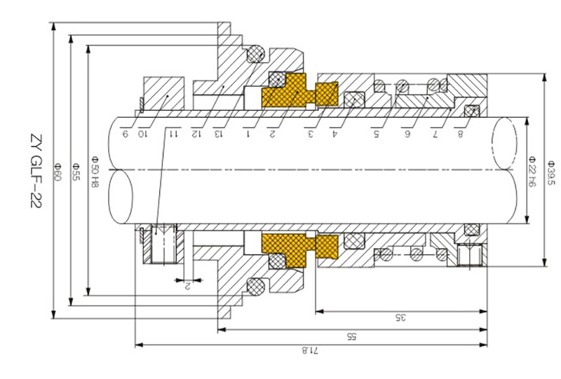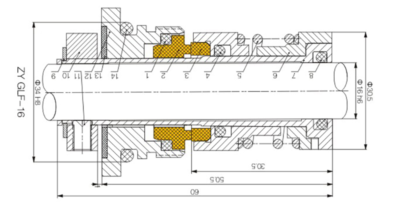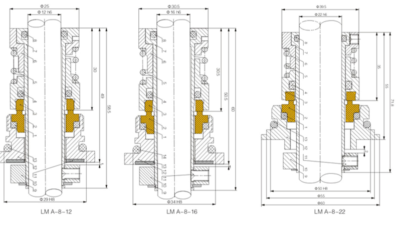 Límites de funcionamientoPresión: ≤1,7 MPaVelocidad: ≤25 m/sTemperatura: -40 °C a -150 °CMaterialesAnillo estacionario (Carbono/SIC/TC)Anillo giratorio (SIC/TC)Sello secundario (VITON/PTFE/VITON encapsulado con PTFE)