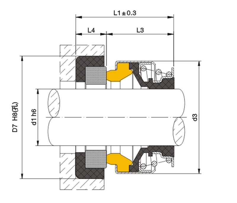 適用范圍溫度:-20~1009壓力:≤0.5MPa線速度: ≤5m/sec介質油、水、一般腐蝕性液體適用于各種抽水泵、攪拌泵等材料 動環(石墨/陶瓷/碳化硅)靜環(石墨/碳化硅)輔助密封(丁腈橡膠/氟橡膠/三元乙丙橡膠)彈簧及其它零件(不銹鋼)材質請根據實際工況選用